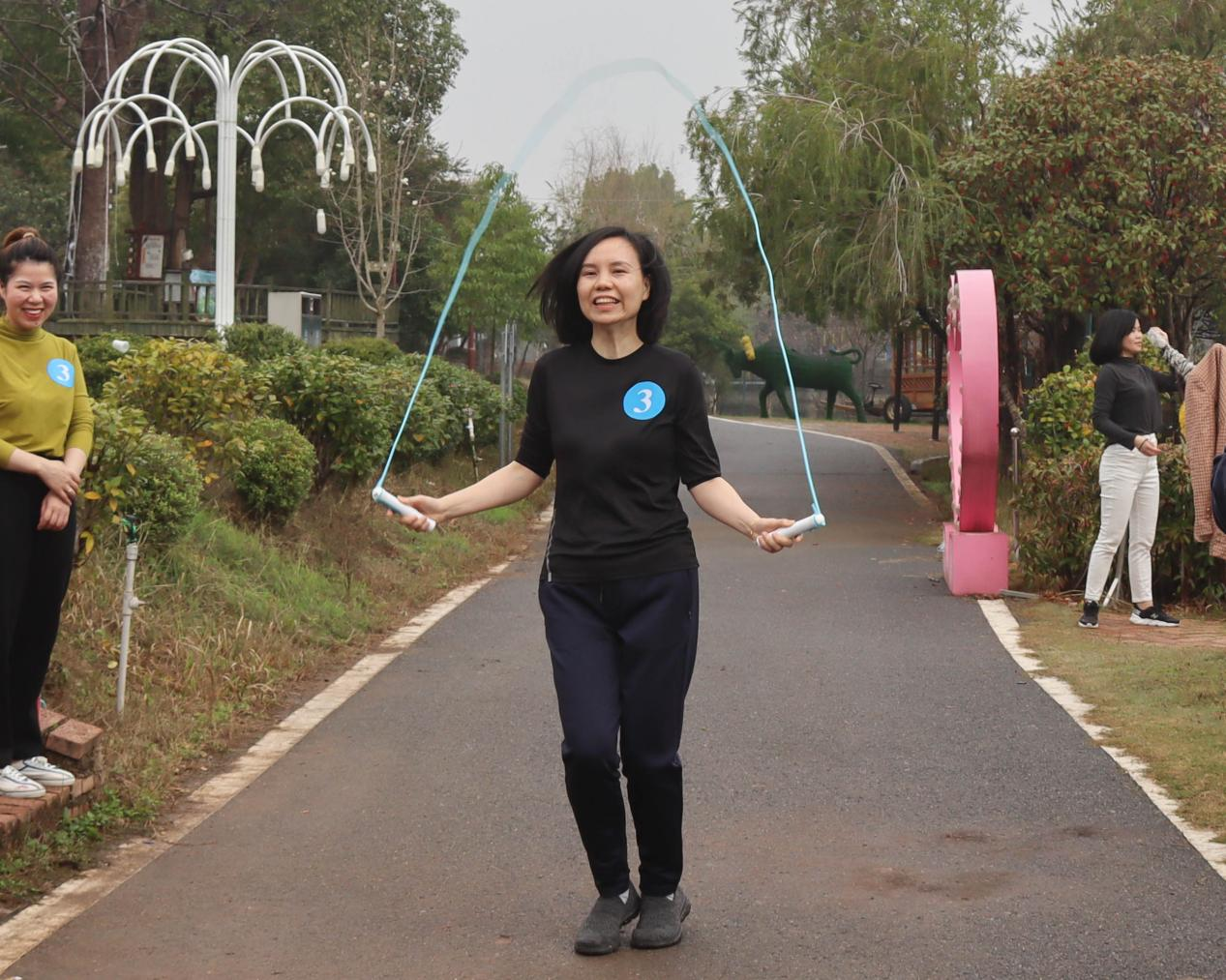 本次活動共設(shè)跳繩、顛氣排球和搶凳子三個游戲項目,參賽人員分為八組進(jìn)行比拼。比賽場上,眾位“女神”各展身手,配合默契,“男神”們則作為幫幫團(tuán)參與比賽,現(xiàn)場熱烈的歡呼聲和加油助威聲此起彼伏,洋溢著歡快的節(jié)日氣氛。