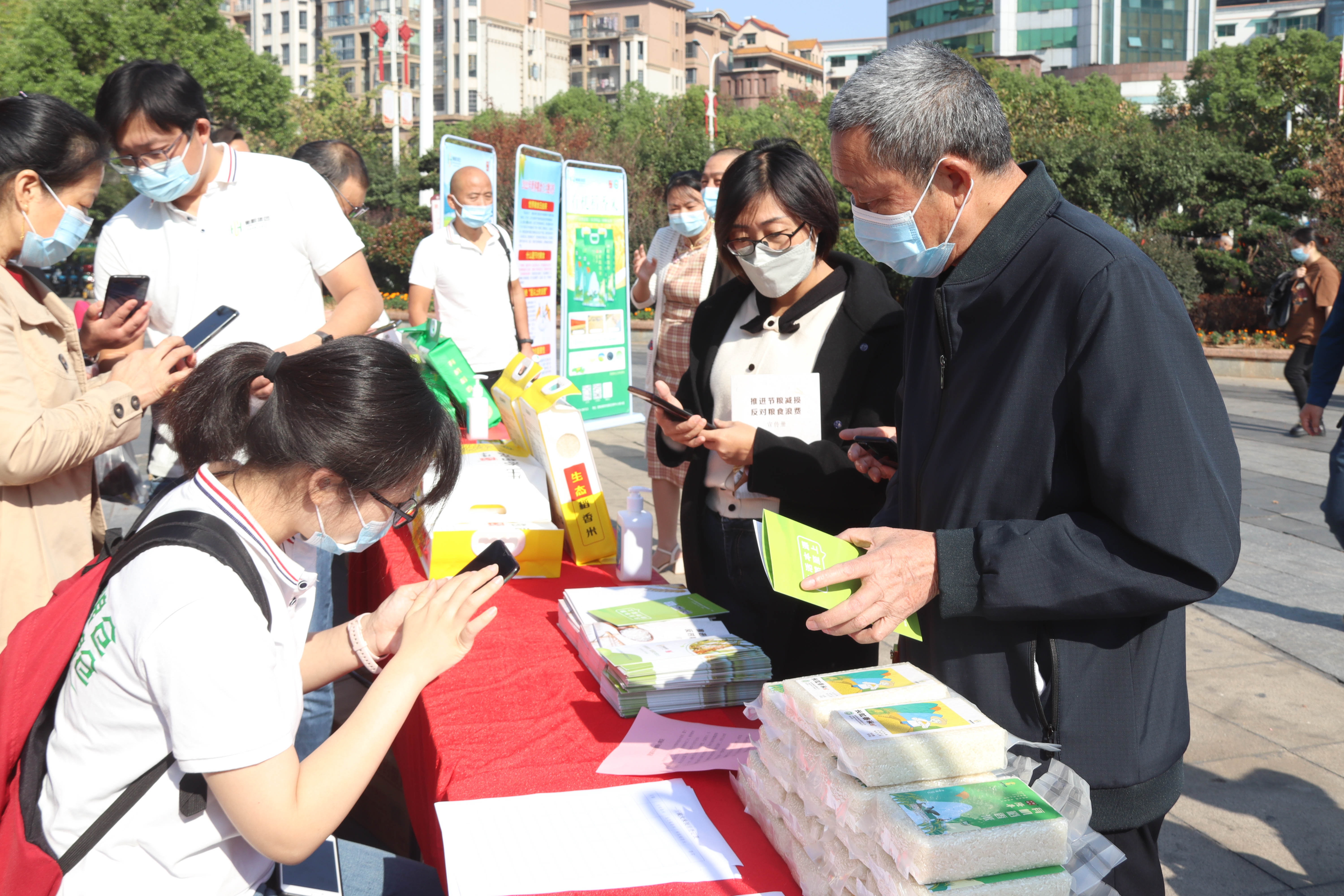 今年10月16日是第42個(gè)世界糧食日,主題是“不讓任何人掉隊(duì)。更好生產(chǎn)、更好營(yíng)養(yǎng)、更好環(huán)境、更好生活”?;顒?dòng)現(xiàn)場(chǎng)布置了咨詢點(diǎn)和宣傳展板,志愿者們向群眾發(fā)放宣傳手冊(cè),普及糧食安全法律法規(guī),介紹放心糧油相關(guān)知識(shí),講解鑒別優(yōu)質(zhì)糧油方法,推行“厲行節(jié)約、反對(duì)浪費(fèi)”的良好社會(huì)風(fēng)尚。